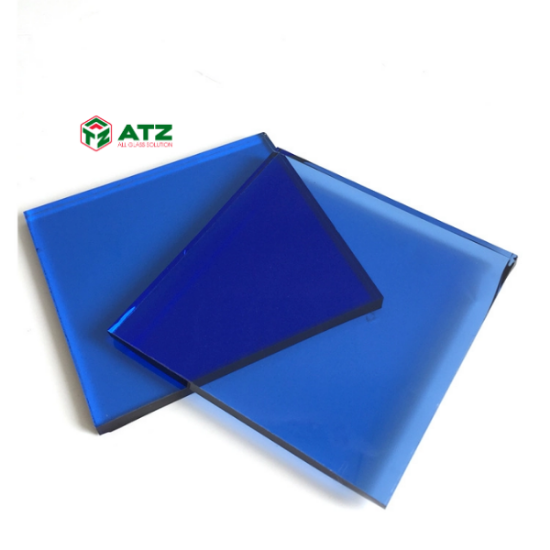 Kính màu xanh biển là loại kính phôi gốc màu xanh biển, bản chất kính có màu sắc. Màu sắc này không phải do sơn nên bền màu cùng thời gian. Kính màu xanh biển phôi gốc được luyện ở 700 độ sau đó được làm lạnh đột ngột bằng khí mát để tạo nên sản phẩm có độ chịu lực cao, bề mặt căng bóng.